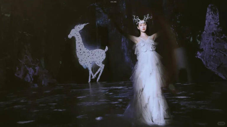 这次创意团队的构思也被网友盛赞为“神来之笔”。为了凸显“麋鹿”元素,他们并没有生硬地将动物形象直接拼贴,而是通过虚实结合的手法,让光影中的鹿角若隐若现,与陈都灵的姿态自然交融。这样的处理方式不仅避免了刻意的违和感,反而增添了几分童话般的诗意。